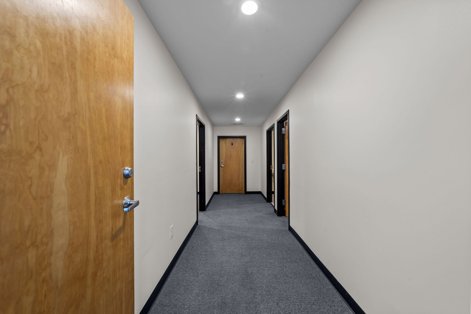 The front portion of the building features an attractive storefront presence with prominent signage opportunities and dedicated on-site parking directly in front of the suite. The interior layout offers an open and adaptable floorplan suitable for retail, showroom, medical, or professional office use, with ample natural light and flexible configurations that can be tailored to meet tenant needs. The space provides a professional environment ideal for businesses requiring strong public accessibility while maintaining efficient workflow and customer convenience.