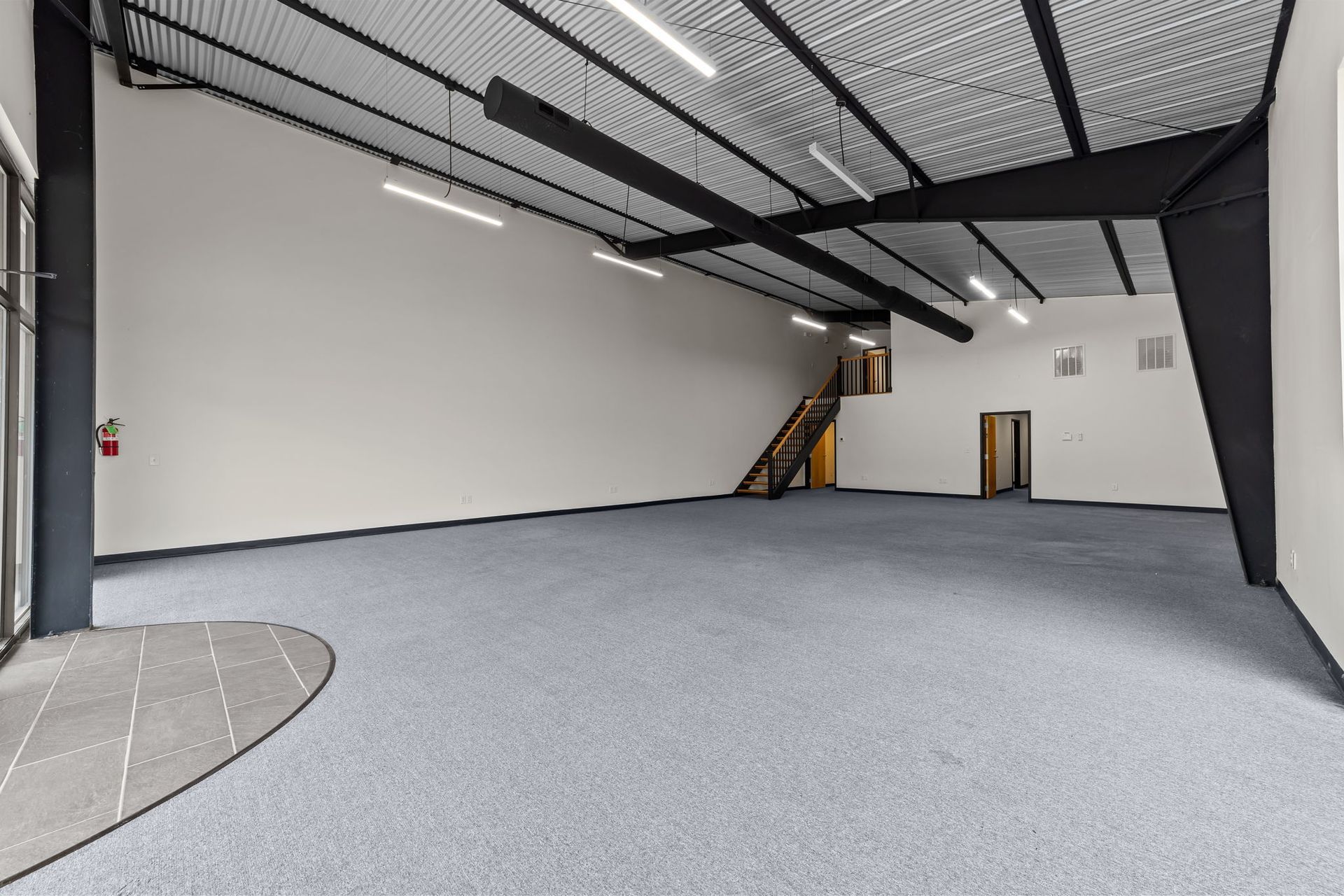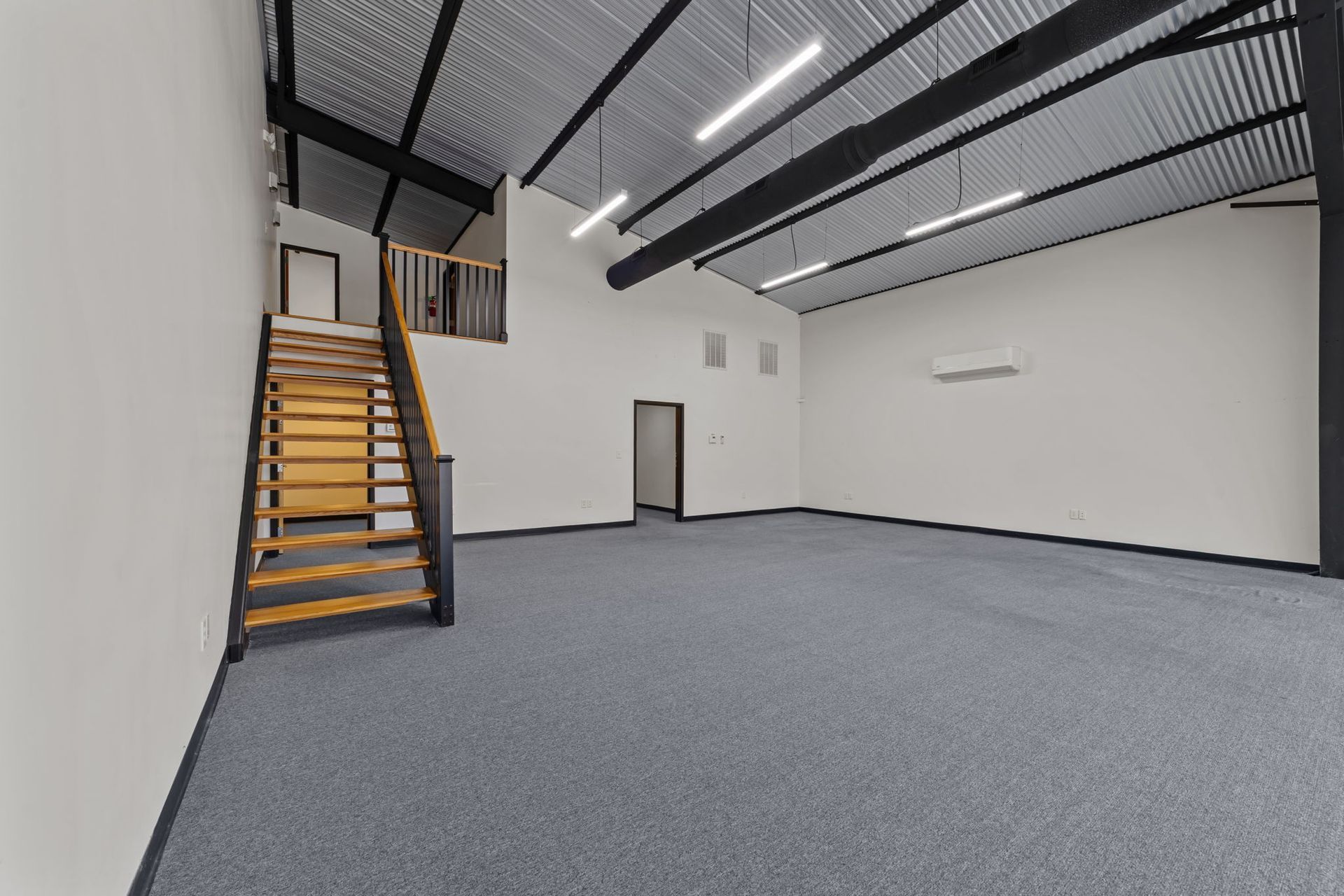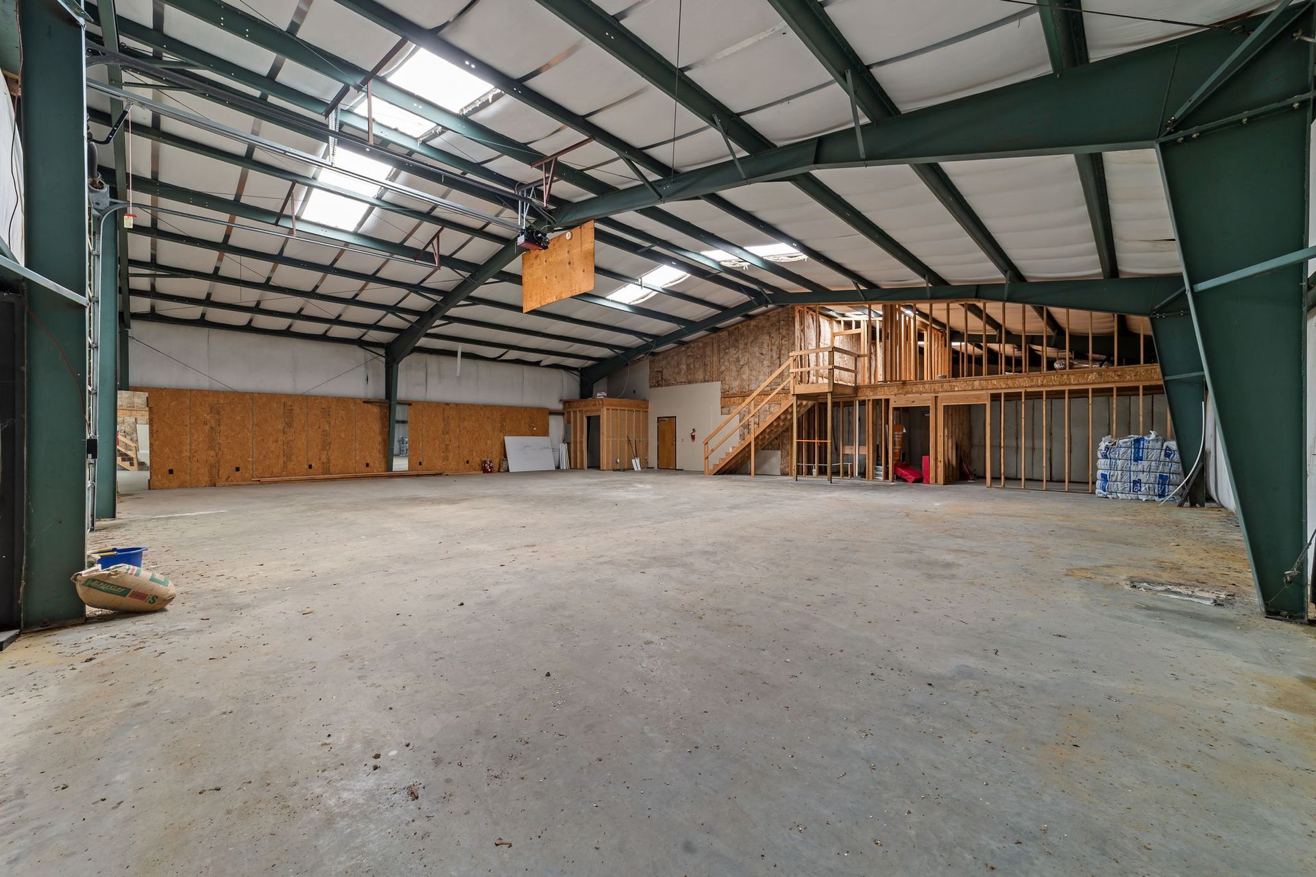 Attached to the retail component is a spacious warehouse area designed to accommodate storage, distribution, contractor operations, or light industrial use. The warehouse offers high ceilings, concrete flooring, overhead roll-up door access, and rear service entry, allowing for seamless delivery and operational functionality. Additional mezzanine storage areas further enhance usability, creating an efficient environment for businesses that require both administrative and logistical space under one roof.